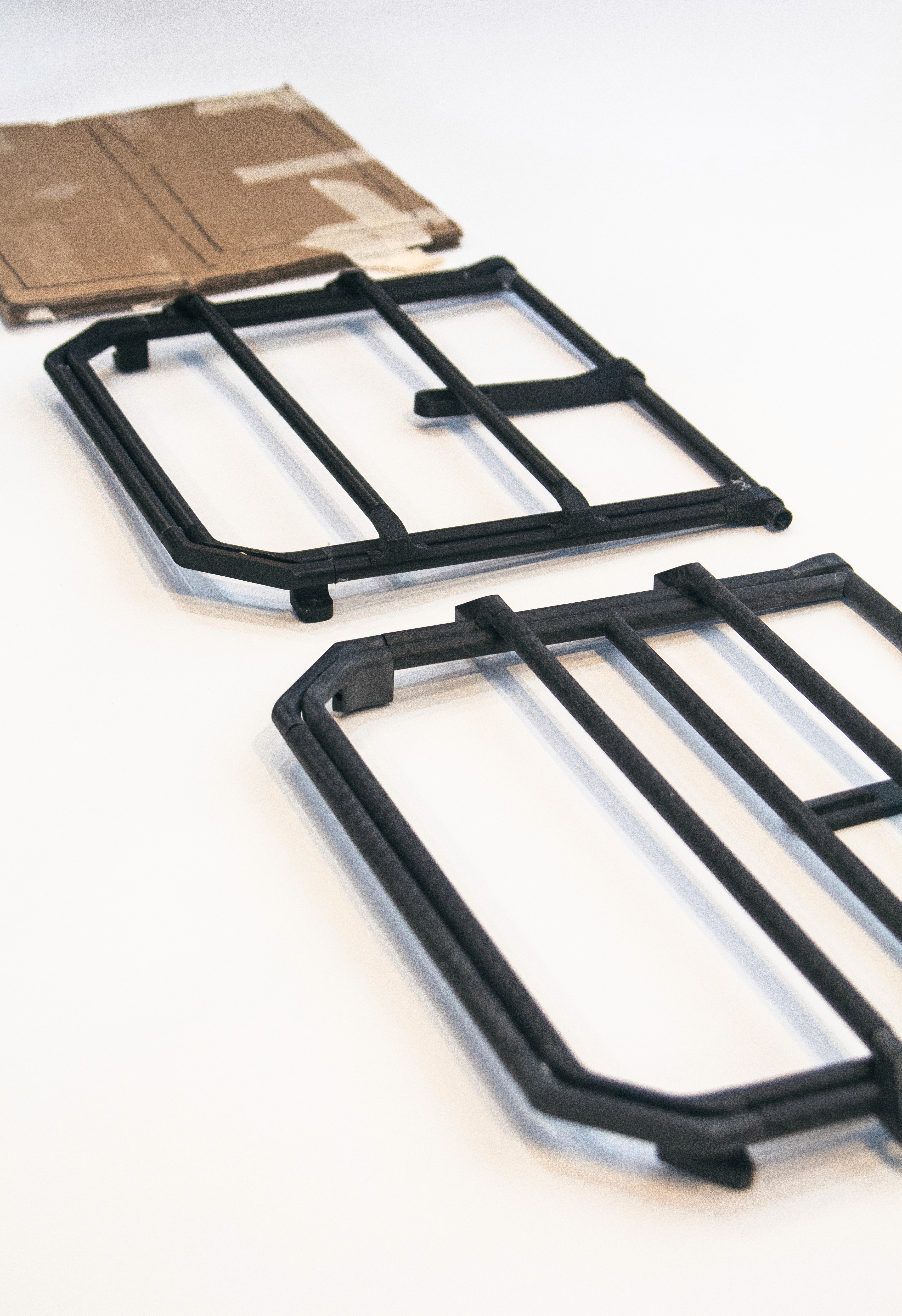Cardboard… 3D Printed Mockup… Final Carbon Prototype.